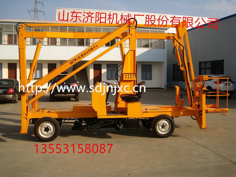 一、產(chǎn)品說明:曲臂式升降機是山東濟陽機械廠最新研制的高空作業(yè)設(shè)備,具有操作簡單體積小,重量輕,價格便宜,外形美觀、作業(yè)面積大、移動方便,特別是能夠跨越障礙物進行作業(yè)等優(yōu)點、是理想的登高作業(yè)設(shè)備。廣泛應(yīng)用與車站、碼頭、賓館大廳、倉庫、車間以及供電和建筑裝璜等部分需要高空作業(yè)的場合。
